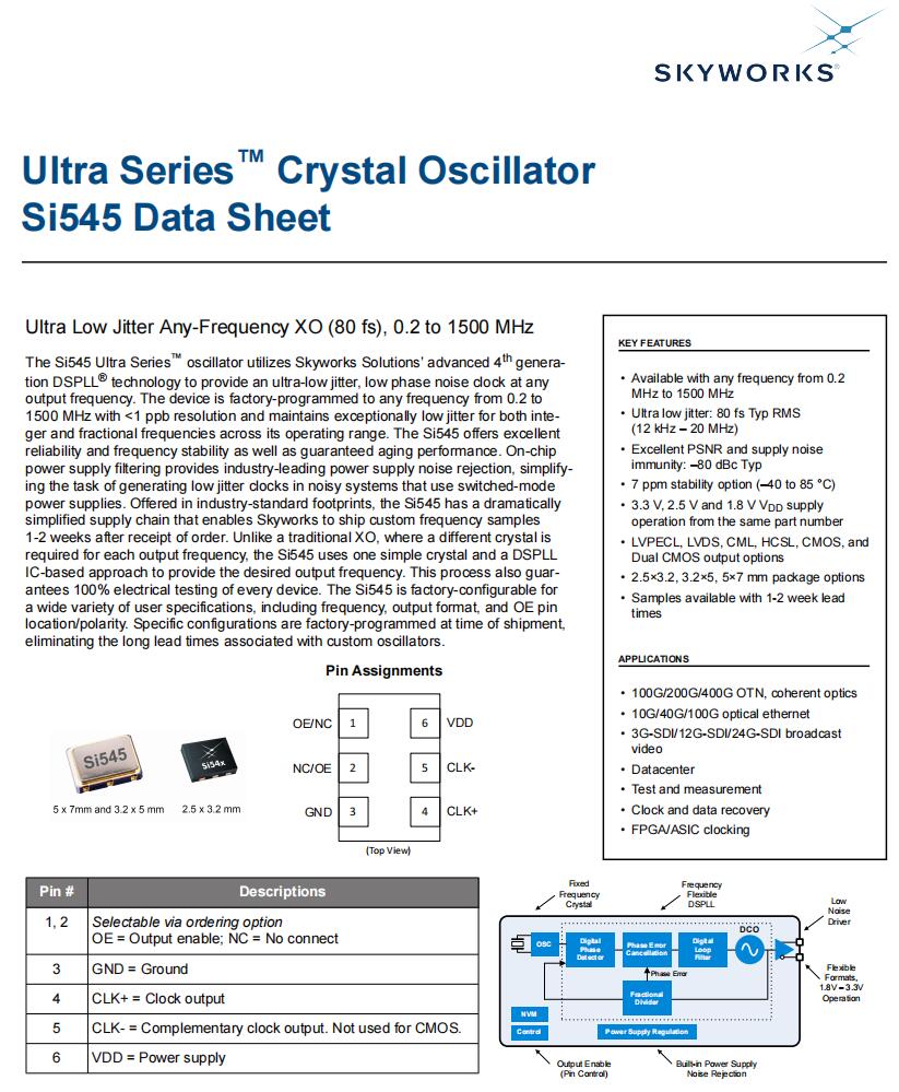 Skyworks差分晶體振蕩器,545BAB122M880ABGR,Si545數據中心應用晶振