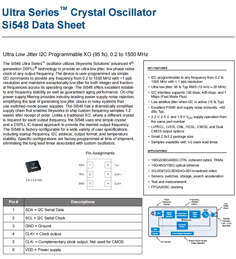Skyworks高精度晶振,548ACAA000179CCGR,Si548服務(wù)器晶振,參數(shù)表