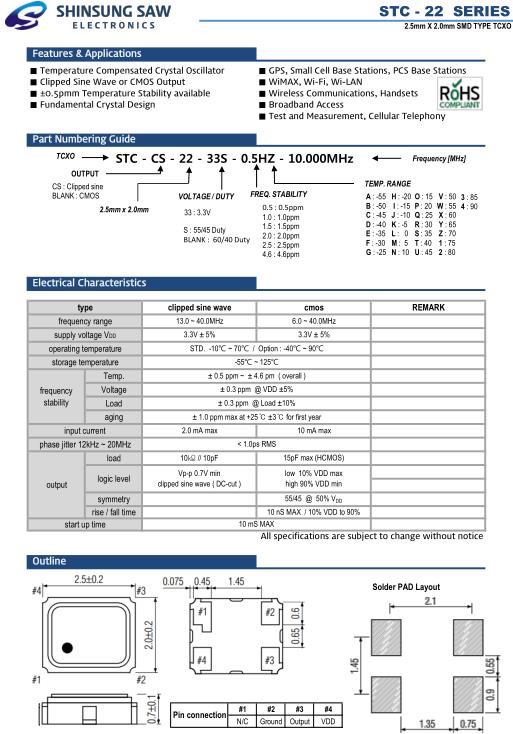 新松晶振,STC-22晶振,STC-CS-22-33S-0.5HZ-10.000MHz晶振,有源晶振,是指晶體本身起振需要外部電壓供應(yīng),起振后可直接驅(qū)動(dòng)CMOS集成電路,產(chǎn)品本身已實(shí)現(xiàn)與薄型IC(TSSOP封裝,TVSOP封裝)同樣的1mm厚度,斷開(kāi)時(shí)的消費(fèi)電流是15µA以下,編帶包裝方式可對(duì)應(yīng)自動(dòng)搭載及IR回流焊接(無(wú)鉛對(duì)應(yīng))產(chǎn)品有幾種電壓供選1.8V,2.5V,3V3.3V,5V,以應(yīng)對(duì)不同IC產(chǎn)品需要.