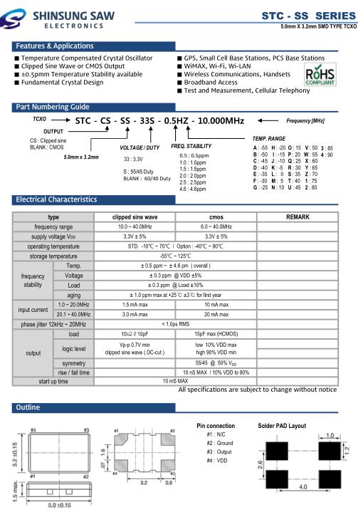 Shinsung晶振,STC-SS晶振,STC-CS-SS-33S-0.5HZ-26.000MHz晶振,5032mm體積的石英晶體振蕩器,有源晶振,該產品可驅動2.5V的溫補晶振,壓控晶振,VC-TCXO晶體振蕩器產品,電源電壓的低電耗型,編帶包裝方式,可對應自動高速貼片機自動焊接,及IR回流焊接(無鉛對應),為無鉛產品,超小型,質地輕.產品被廣泛應用到集成電路,程控交換系統,無線發射基站.