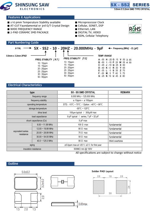 Shinsung晶振,SX-SS2晶振,SX-SS2-10-20HZ-20.000MHz-8pF晶振,智能手機晶振,產(chǎn)品具有高精度超小型的表面貼片型石英晶體振蕩器,最適用于移動通信終端的基準時鐘等移動通信領域.比如智能手機,無線通信,衛(wèi)星導航,平臺基站等較高端的數(shù)碼產(chǎn)品,晶振本身小型,薄型具備各類移動通信的基準時鐘源用頻率,貼片晶振具有優(yōu)良的電氣特性,耐環(huán)境性能適用于移動通信領域,滿足無鉛焊接的高溫回流溫度曲線要求.