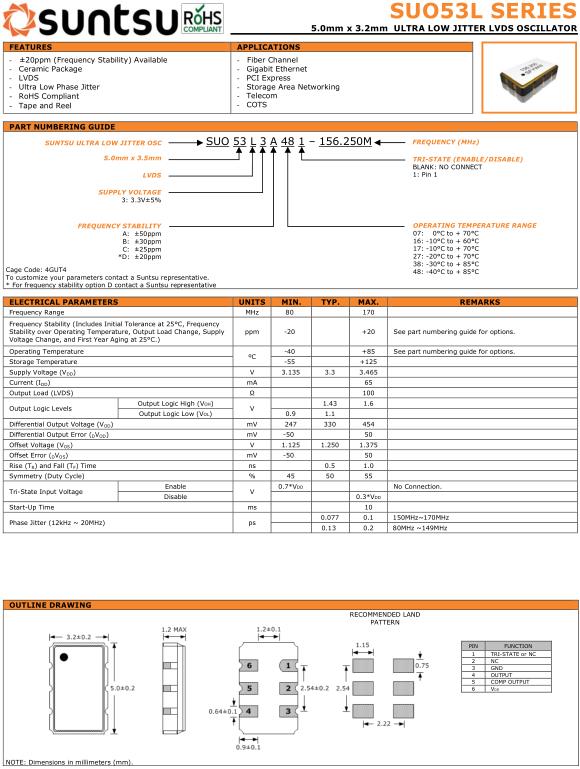 Suntsu晶振通過自身的努力,不斷創新的精神,生產大量的優質晶振產品,包括石英晶體振蕩器,溫補晶振,OSC差分晶振等元件.松圖晶振,SUO53L晶振,SUO53L3A481-156.250M晶振.