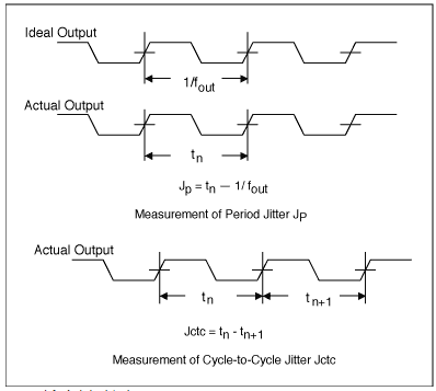 對于石英晶體振蕩器,抖動是一項重要的性能測量.有兩種最常用的抖動定義:周期抖動和周期間抖動,見圖3細節.為了測量抖動,我們可以使用高速數字采樣示波器對大量數據進行采樣,并根據定義計算抖動.Tektronix(TDS7254)或Lecroy(Wavepro960)的示波器使用配備的軟件提供這些測量.我們還可以使用高速數字示波器來測量時域中的周期抖動.圖3顯示了設置.通過時域方法,我們無法測量周期到周期的抖動.但是,如果每個周期的晶振抖動噪聲是獨立且相同分布的,則周期間抖動是周期抖動的1.414倍.MAX9485可根據不同的音頻采樣頻率和頻率比例因子產生21種不同的輸出頻率.我們使用了圖4中所示的設置測量所有可能的輸出CLK頻率的周期抖動.