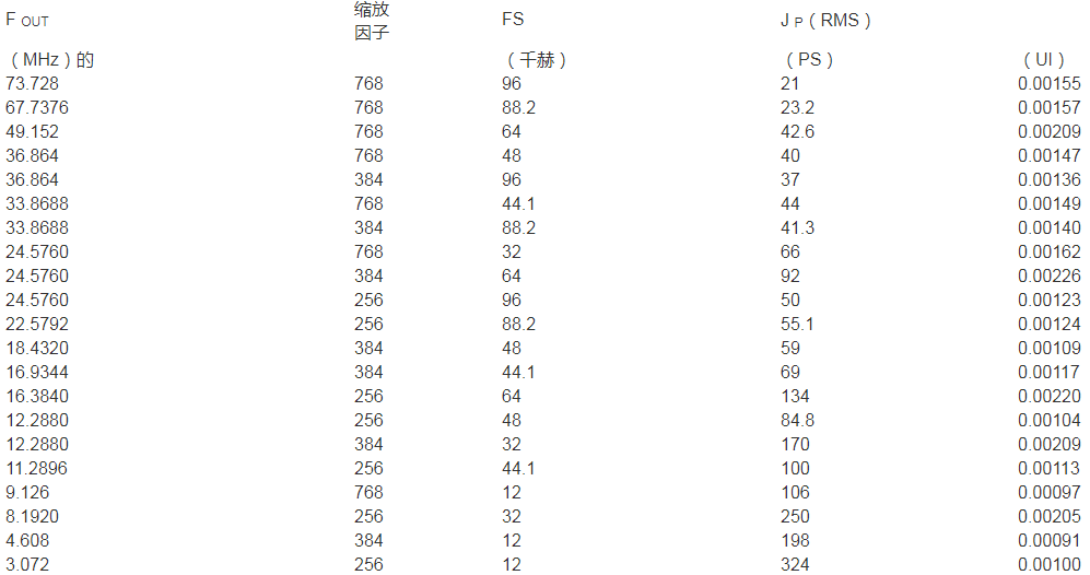 表1.周期抖動與輸出頻率的關系