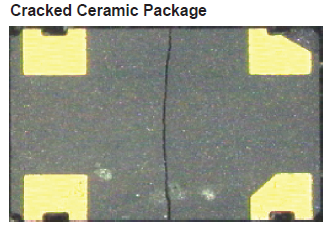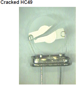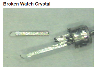 過度的震動會導(dǎo)致電特性的改變,這很可能會表現(xiàn)為頻率的改變.嚴(yán)重的虐待,例如掉落到堅硬的表面上,很可能導(dǎo)致石英坯料的實際破裂.在陶瓷封裝部件的情況下,陶瓷也可能破裂,導(dǎo)致氣密性損失. 處理引線
