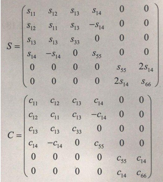 (4)與石英晶體切變之間耦合性質有關的交叉彈性柔順常數為:s56(=2S14).