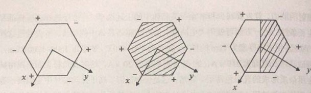 (a)左旋石英晶體的極性;(b)右旋石英晶體的極性;(c)光雙晶的極性;