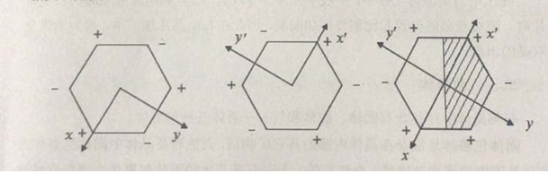 (a)左旋石英晶體的極性;(b)繞光軸轉180°°后左旋石英晶體諧振器的極性C)電雙晶的極性;