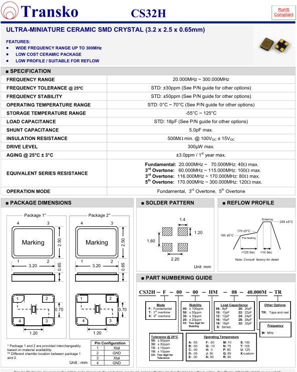 | SPECIFICATION-Transko晶振 | CS32H晶振 |