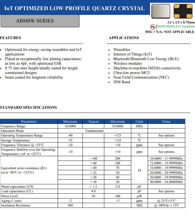 更多>>艾博康的高質(zhì)量石英晶體ABM8W-38.4000MHZ-4-B2U-T3,比較適合用于超低功耗MCU