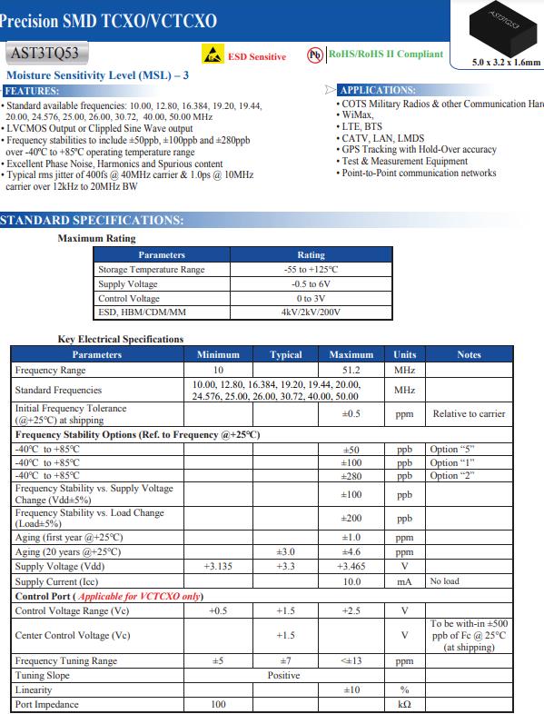 | AST3TQ53-V-19.440MHZ-5-C | Abracon晶振 | AST3TQ53 | VCTCXO | 19.44MHz | 3.3V | -40°C ~ 85°C |