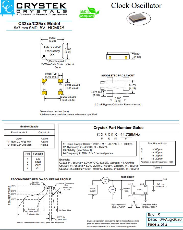 | C3290-44.736 | CRYSTEK振蕩器 | C3290 | XO (Standard) | 44.736MHz | ±100ppm | 0°C ~ 70°C |