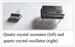 壓電諧振器作為單獨的元件出售,用于晶體振蕩器電路.圖中顯示了一個例子.它們通常與晶體振蕩器電路一起集成在一個封裝中,如右側所示.