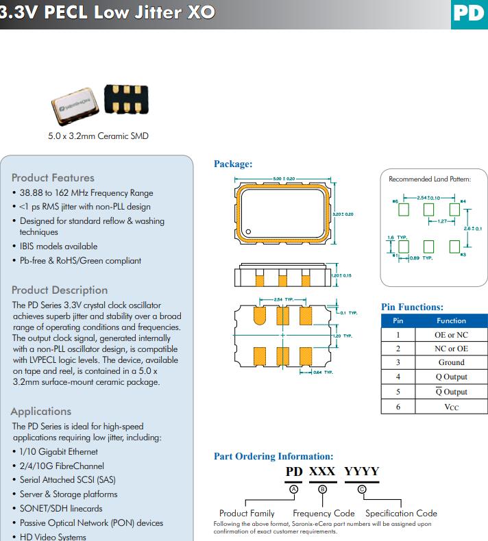 更多>>PD5000002是一款5032mm的高質量時鐘振蕩器,非常適合用于高清視頻系統,ECERA品牌