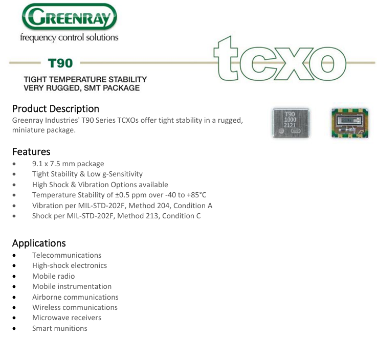 更多>>Greenray晶振T90系列TCXO發(fā)揮著關(guān)鍵作用