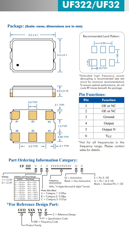 更多>>UF322/UF32 XO系列是經過優化的晶體振蕩器系列