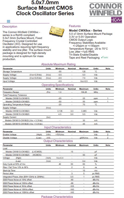 | CWX823-050.0M | Connor-Winfield | CWX823 | 50MHz | -20°C ~ 70°C |