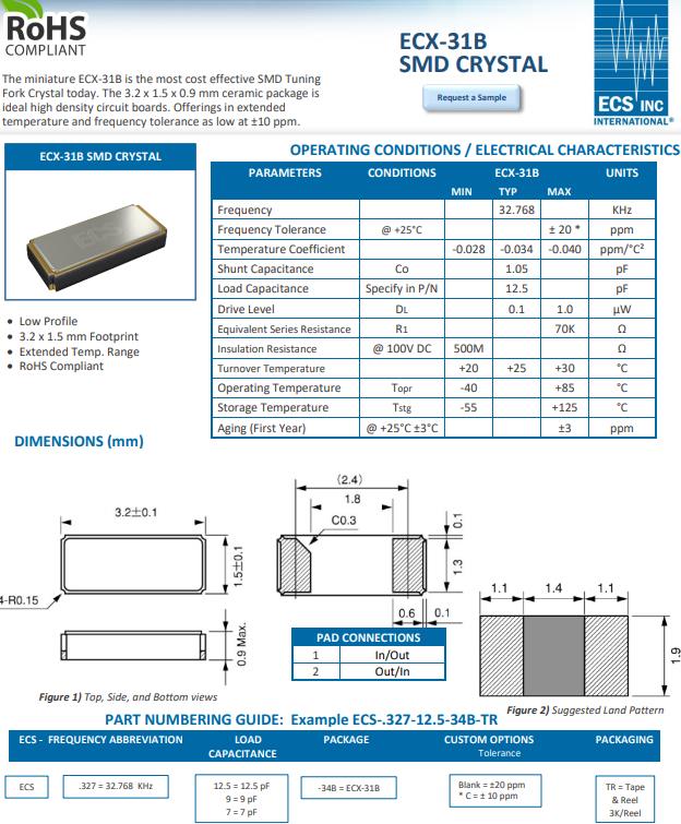 ECS伊西斯ECX-31B時鐘晶振,ECS-.327-7-34B-TR石英晶體,ECS-.327-7-34B-C-TR,32.768K晶振,參數圖