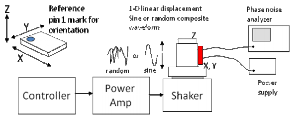 由于外力的方向,持續時間和強度可能不同,因此測量振蕩器在各種測試條件下的電響應非常重要,以充分了解它們對沖擊和振動的敏感性.SiTime晶振評估振蕩器對三種不同振動或沖擊模式的響應:(1)正弦振動,(2)隨機振動和(3)脈沖沖擊.測試的器件都是市售產品,包括SiTime和一家競爭對手的基于微機電系統的振蕩器,以及幾家制造商的基于石英的振蕩器.我們包括帶有表面聲波晶體諧振器的石英振蕩器,已知在高工作頻率下具有低抖動.