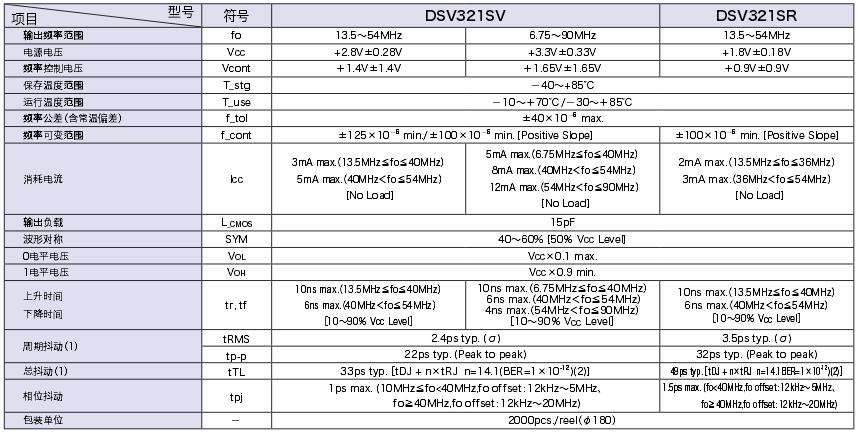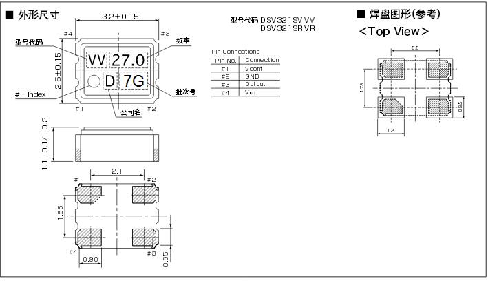 DSV321SR振蕩器:3225尺寸、厚度1.1mm、小型SMD-VCXO.雖然小型但確保充足的可變量,頻率發(fā)生線性變化的模擬類型VCXO,低消耗電流.適用于DVD、數(shù)字TV、STB、ADSL、基干傳輸用等產(chǎn)品.頻率范圍可達(dá)13.5~54MHZ.屬于工業(yè)級(jí)晶振.可耐高溫,經(jīng)過專業(yè)檢測(cè)認(rèn)證屬于無鉛環(huán)保產(chǎn)品. 2016、2520、3225、5032系列貼片晶振成為了市場(chǎng)的主流尺寸.
