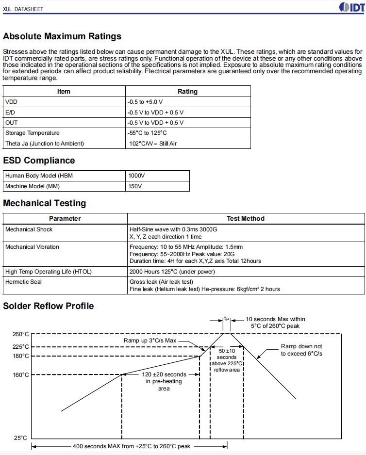 IDT石英晶體振蕩器,XUL535125.000JS6I8,6G通訊設備晶振,XUL736150.000JU6I,LVDS差分晶振,參數表