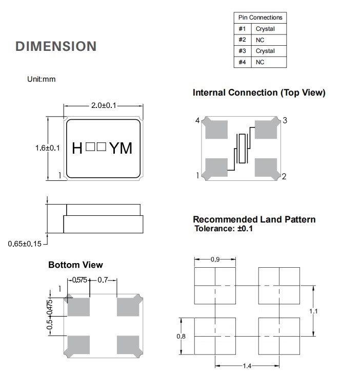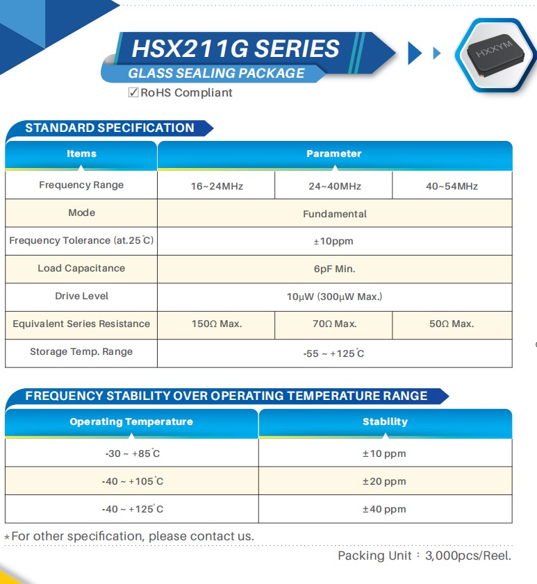 臺灣HELE加高晶振,HSX211G無源晶振,四腳貼片晶振,6G無線模塊晶振,無鉛環保晶振,參數表