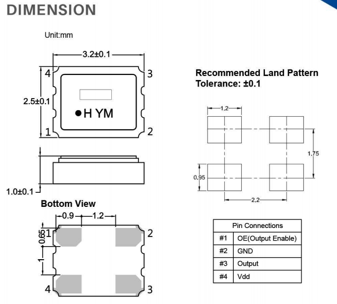 加高低電壓晶振\SSW024576F3CHC-T\HSO321S貼片振蕩器 尺寸圖