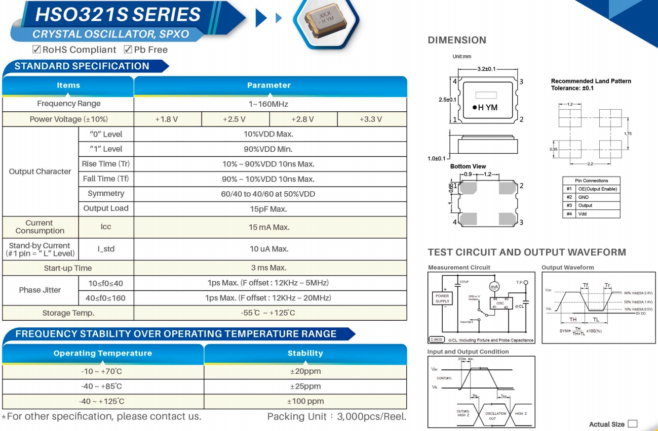 加高低電壓晶振\SSW024576F3CHC-T\HSO321S貼片振蕩器 參數表