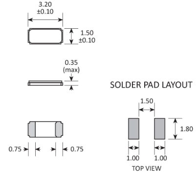 | 外形尺寸 | 3.2 x 1.5 x 0.35mm |
