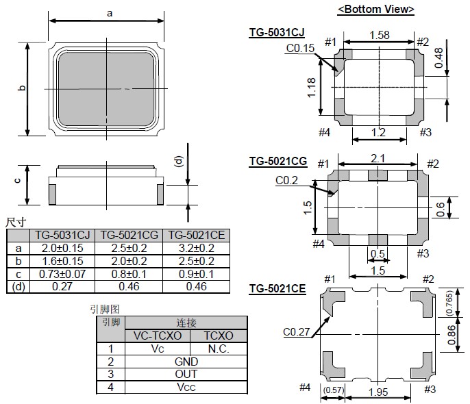 進口振蕩器5021CG/CE,TG-5031CJ貼片晶振,有源3.3V晶振溫補晶振(TCXO)產品本身具有溫度補償作用,高低溫度穩定性:頻率精度高0.5 PPM?2.0 PPM,工作溫度范圍: - 30度?85度,電源電壓:1.8V?3.3V之間可供選擇,產品本身具有溫度電壓控制功能,世界上最薄的晶振封裝,頻率:26兆赫,33.6兆赫,38.4兆赫,40兆赫,因產品性能穩定,精度高等優勢.