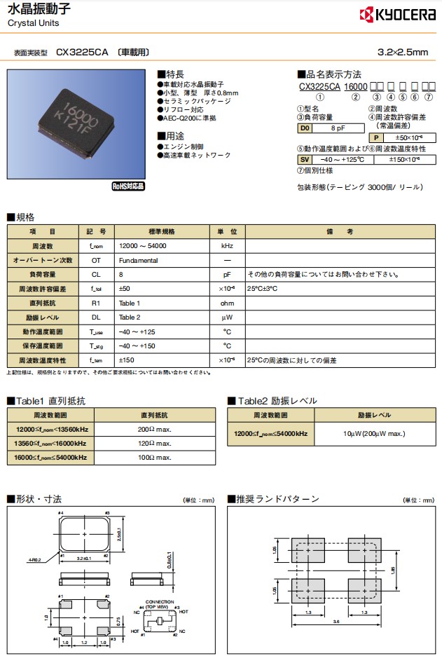 | CX3225CA16000D0HSSZ1 | CX3225CA | 16MHz | -40°C ~ 125°C | 4-SMD, No Lead |