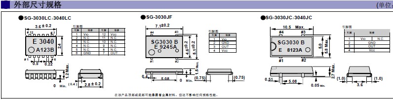 EPSON晶振SG-3030LC,JC,JF,SG-3040LC,JC,JC,32.768KHZ有源晶振低功耗,低電壓貼片式石英振蕩器,“SG-3030LC 32.7680KB3:PURE SN”具有啟動(dòng)功率低,并且有多種電壓供選擇,比如有1.8V,2.5V,3.3V,3.8V,5V等,產(chǎn)品被廣泛應(yīng)用于,平板筆記本,GPS系統(tǒng),光纖通道,千兆以太網(wǎng),串行ATA,串行連接SCSI,PCI-Express的SDH / SONET發(fā)射基站等領(lǐng)域.符合RoHS/無鉛.