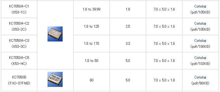 KC7050A-C1-C2-C3-C5 KC7050B振蕩器,KDDI株式會社貼片式石英晶體振蕩器,低電壓啟動功率,并且有多種電壓供選擇,比如有1.8V,2.5V,3.3V,3.8V,5V等,產(chǎn)品被廣泛應(yīng)用于,平板筆記本,GPS系統(tǒng),光纖通道,千兆以太網(wǎng),串行ATA,串行連接SCSI,PCI-Express的SDH / SONET發(fā)射基站等領(lǐng)域.符合RoHS/無鉛.