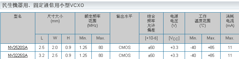 NV3225SA晶振,壓控晶振3225,日本進口NDK晶振.VCXO是指這款晶體產(chǎn)品控制功能只有單壓控也就是電壓控制功能,產(chǎn)品本身頻率精度可以隨著電壓搞定起伏來自動調(diào)整頻率,使產(chǎn)品永遠控制在一定的頻率范圍,壓控晶振(VCXO)壓控石英晶體振蕩器基本解決方案,PECL輸出,輸出頻率60 MHz到200 MHz之間,出色的低相位噪聲和抖動,三態(tài)功能,應(yīng)用:SDH/ SONET,以太網(wǎng),基站,筆記本晶振應(yīng)用, VCXO,壓控晶體應(yīng)用:調(diào)制解調(diào)器,ADSL網(wǎng)絡(luò)控制器,無線基站,程控交換設(shè)備智能手機,筆記本晶振等符合RoHS/無鉛.