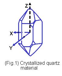 石英是由硅原子和氧原子組合而成的二氧化硅(Silicon Dioxide, SiO2),“SG5032EAN 125.000000M-KEGA3”, 以32點群的六方晶系形成的單結晶結構﹝左圖﹞.單結晶的石英晶體結構具有壓電效應特性, 當施加壓力在晶體某些方向時, 垂直施力的方向就會產生電氣電位. 相對的當以一個電場施加在石英晶體某些軸向時, 在另一些方向就會產生變形或振動現象. 掌握單結晶石英材料的這種壓電效應, 利用其發生共振頻率的特性, 發揮其精確程度作為各類型頻率信號的參考基準, 就是水晶震蕩器的設計與應用.