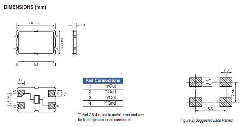 | 頻率溫度特征 | f_tem | ±30 × 10-6/-20°C ~ +70°C | 超出標準的規格請聯系我們. | |