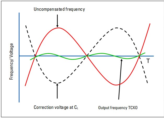 TCXO,溫度補償晶體振蕩器——一種溫度補償晶體振蕩器,其中的校正電壓由與溫度相關的電阻器或類似的電阻器產生,用于頻率校正。模擬TCXOs可以比單獨的晶體實現大約20倍的改進