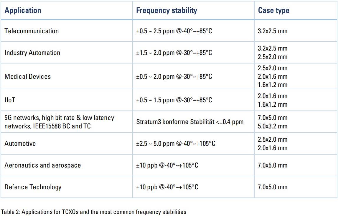消費部門、自動化部門以及越來越多的醫療技術部門正在轉向更常見的tcxo,其中小型化和更好的頻率行為的趨勢是明顯的。