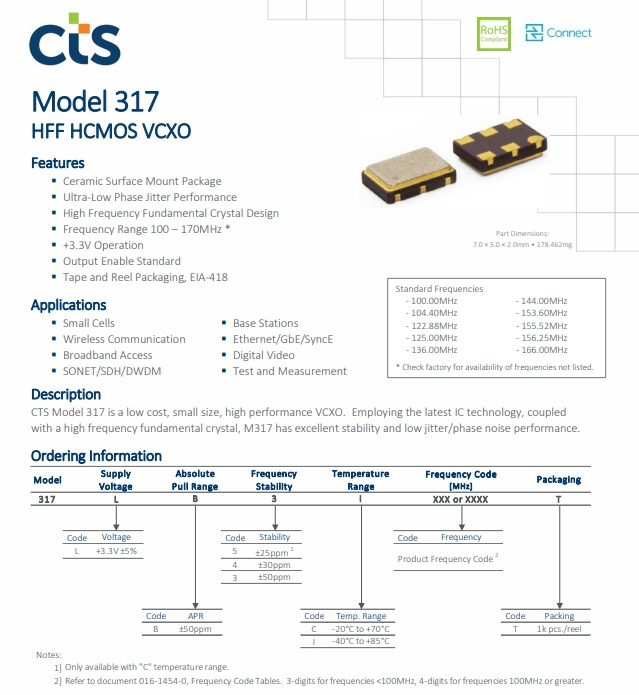 | 345LB6C1250T | CTS | 345 | VCXO | 125 MHz | LVPECL |