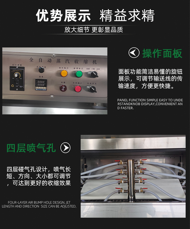 - 減少廢氣排放:與一些傳統的熱收縮設備(如使用燃氣直接加熱空氣的熱風收縮機)相比,蒸汽收縮機的廢氣排放量相對較少。這是因為蒸汽收縮機主要利用蒸汽的潛熱進行包裝材料的收縮,蒸汽在收縮通道內循環使用,只有少量蒸汽在完成熱交換后排出,而且排出的主要是水蒸氣,對環境的污染較小。