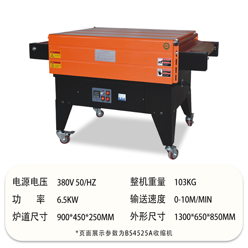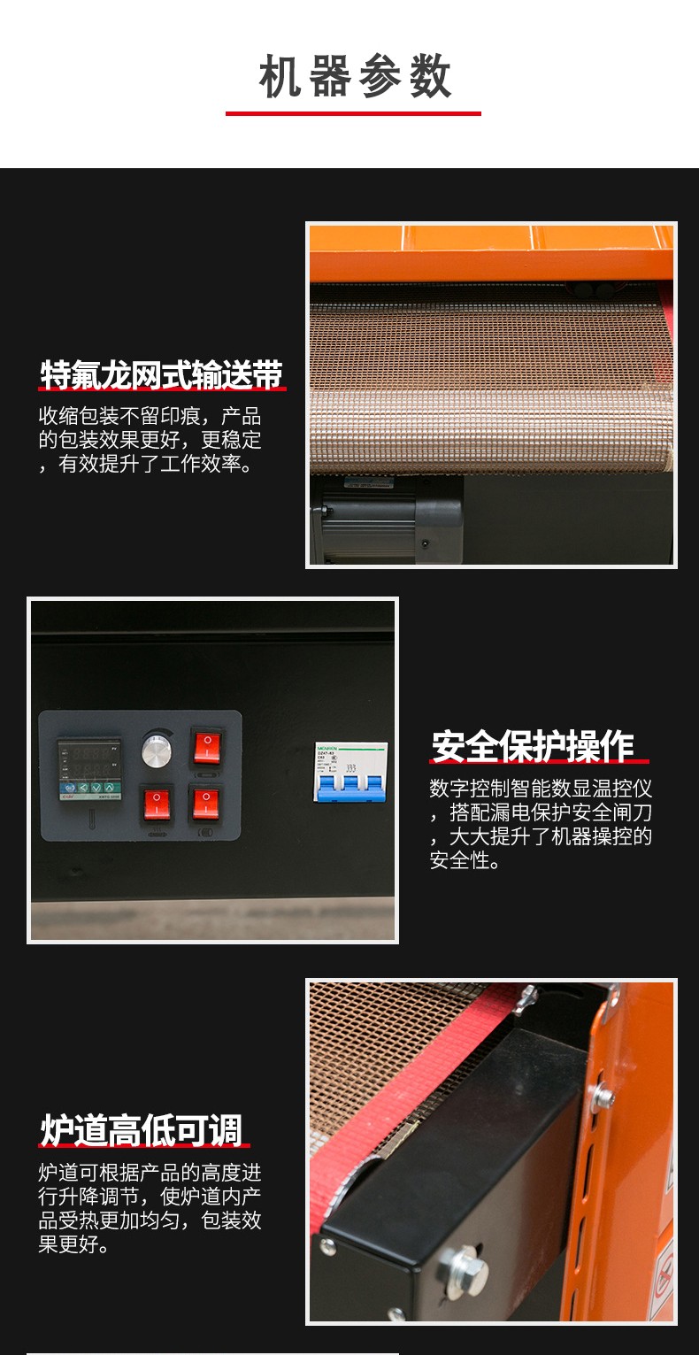 - 輸送速度可調:輸送速度可以根據包裝需求靈活調整。可以根據產品的大小、形狀復雜程度以及生產效率的要求來設置合適的輸送速度。比如,在包裝簡單的小型產品時,可以提高輸送速度,以提高包裝效率;而在包裝大型或形狀不規則的產品時,適當降低輸送速度,確保熱空氣有足夠的時間使薄膜充分收縮,從而保證包裝質量。