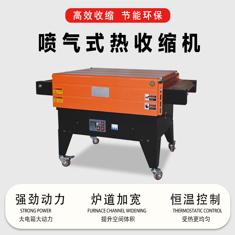 - 兼容多種薄膜材料:能夠與多種熱收縮薄膜配合使用,如 PVC(聚氯乙烯)、POF(聚烯烴)、PE(聚乙烯)等薄膜。不同的薄膜材料有不同的特性,如收縮溫度、收縮率、透明度、柔韌性等。噴氣式熱收縮機可以根據這些薄膜的特點,通過調整溫度和噴氣等參數,實現良好的包裝效果。例如,POF 薄膜具有高透明度和良好的韌性,在包裝高檔產品時,通過噴氣式熱收縮機可以充分發揮其優勢,使包裝后的產品具有良好的展示效果。