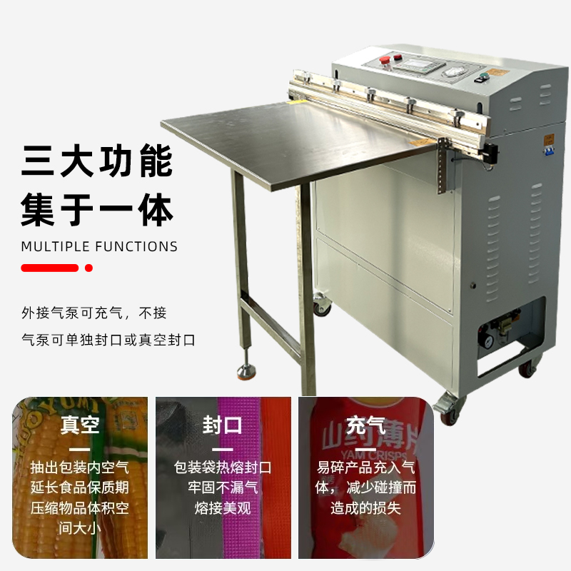 這種高效的包裝能力,使得它能夠充分滿足大規模生產需求。無論是食品企業大規模生產的休閑食品、肉制品,還是醫藥企業批量生產的藥品、保健品,亦或是電子企業大量制造的電子元件等產品的包裝工作,氣動外抽真空包裝機都能高效應對。它能快速完成海量產品的真空包裝,助力企業在單位時間內生產出更多成品,及時供應市場,提高企業在市場競爭中的供貨能力與市場占有率。