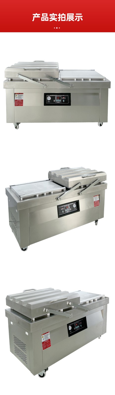 設(shè)備通電啟動(dòng)后,左、右兩個(gè)真空室均處于 “開蓋待機(jī)” 狀態(tài),真空泵、封口系統(tǒng)處于就緒狀態(tài)。操作人員首先將待包裝物料(如鹵味、電子零件)放入右室的包裝袋中,并將袋口平整鋪在真空室的 “封口條區(qū)域”(確保袋口無(wú)褶皺、無(wú)液體 / 雜質(zhì)污染),隨后按下右室 “啟動(dòng)” 鍵,右室蓋在氣動(dòng) / 電動(dòng)驅(qū)動(dòng)下自動(dòng)下壓,與真空室邊緣的硅膠密封圈貼合,完成右室初步密封。