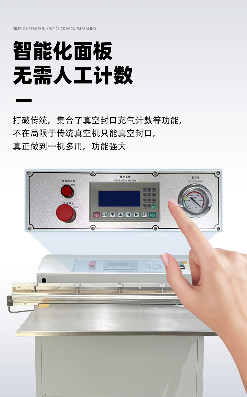 • 外抽真空包裝機的熱封條通常位于抽氣嘴下方或封口機構處,外部有金屬防護蓋(防止誤觸高溫)。