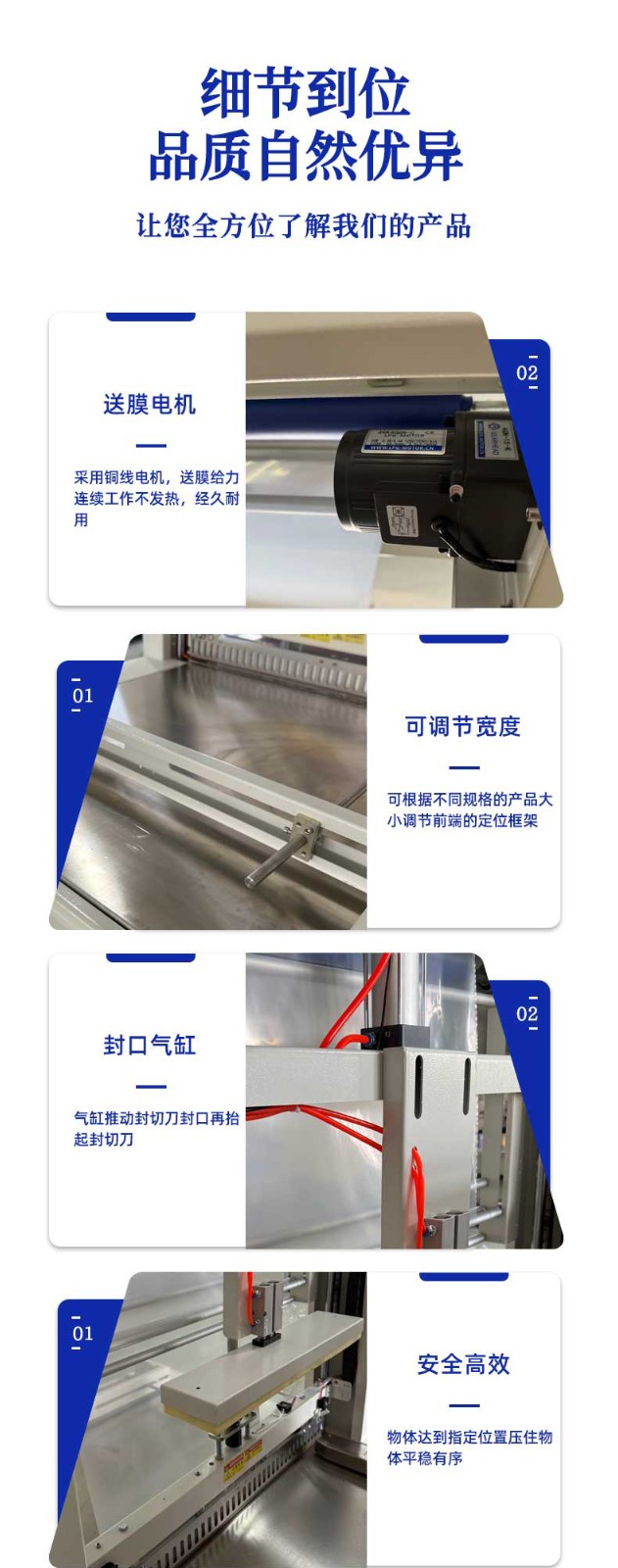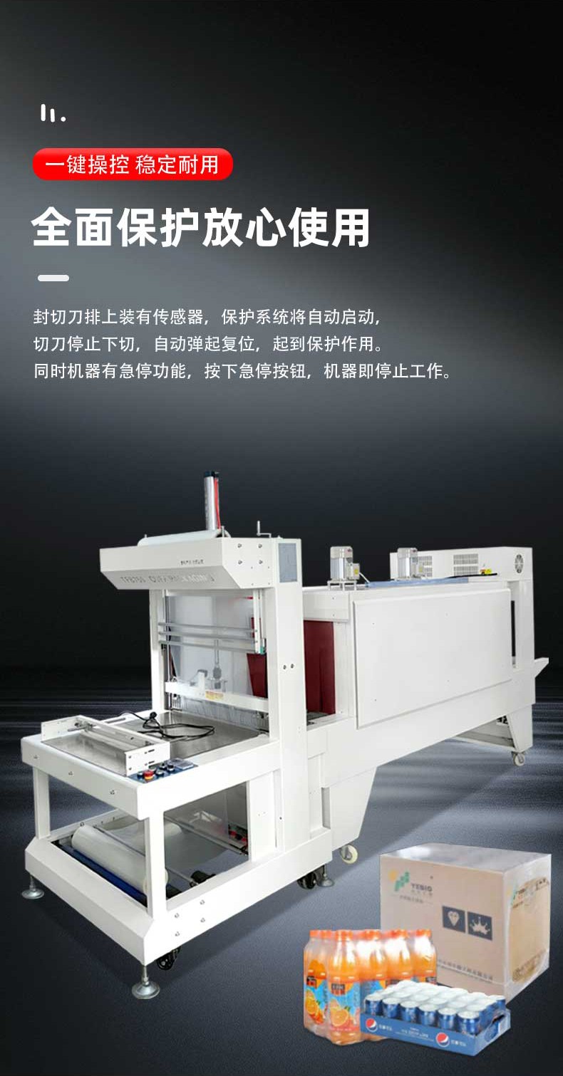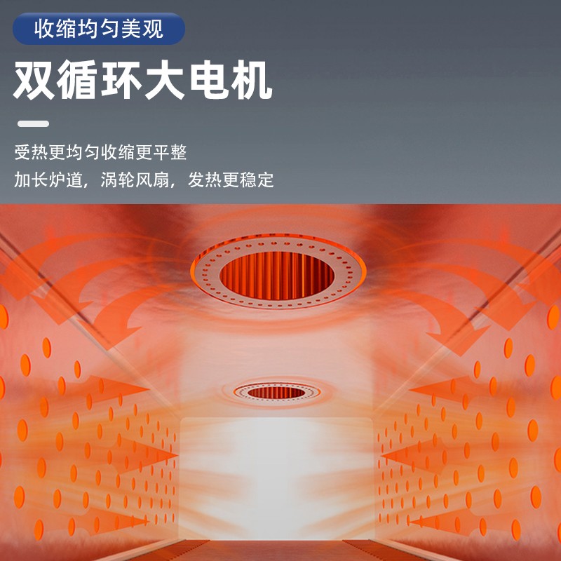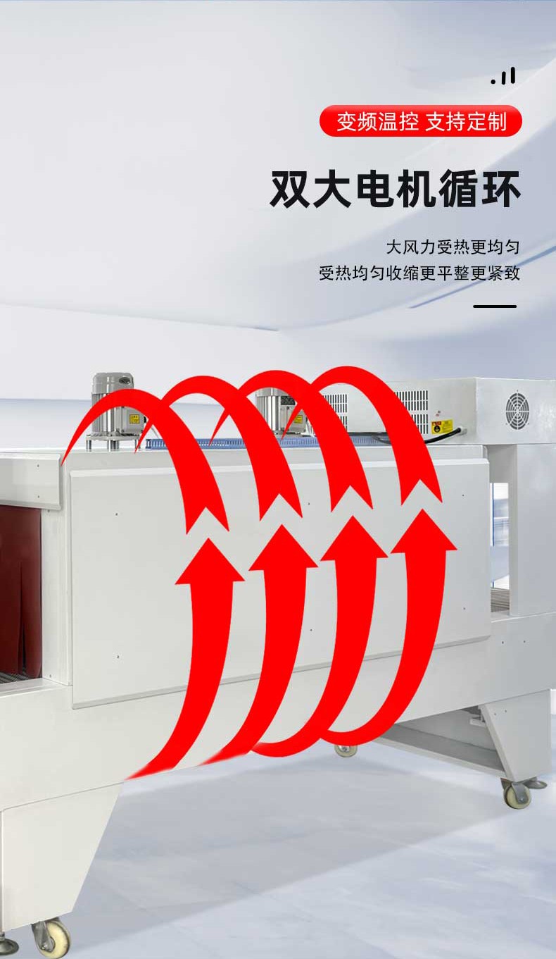 熱收縮定型:封切后的產品進入熱收縮區,通過高溫熱風循環系統使膜材均勻收縮,緊密貼合產品輪廓。