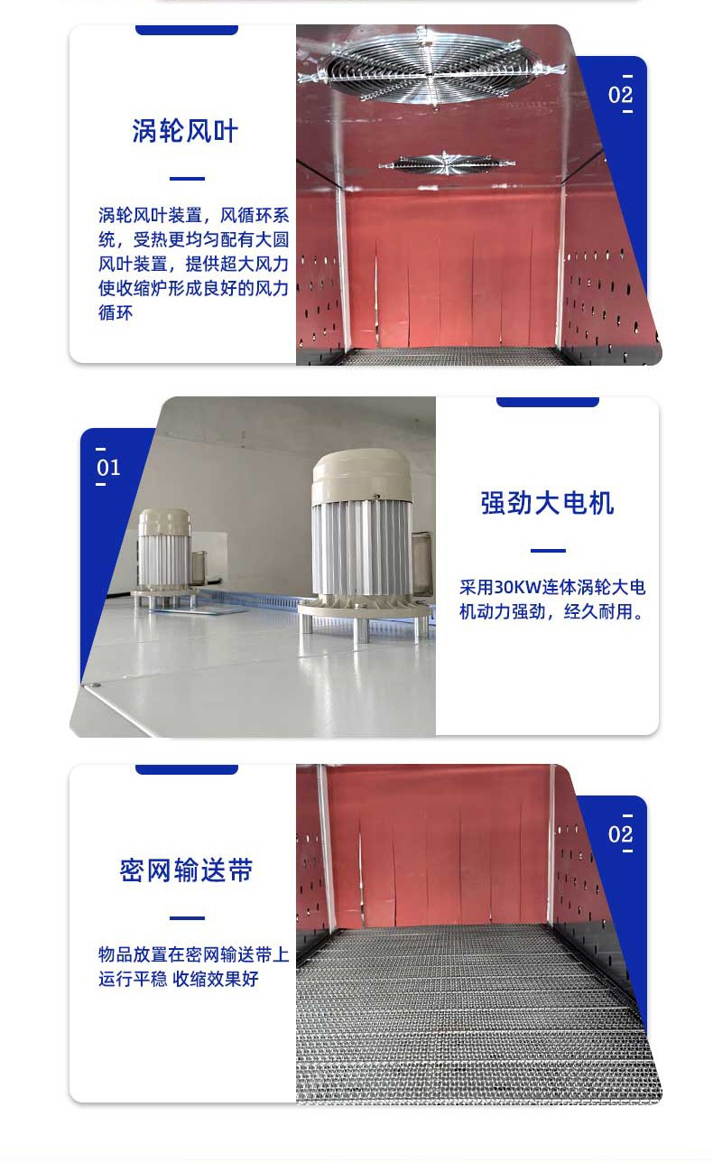 • 能耗控制優異:設備多采用紅外輻射、石英管加熱或蒸汽加熱等節能方案,像蒸汽加熱機型單件能耗低至 0.008kW?h,比紅外加熱節能 40%;紅外輻射或石英管加熱相比傳統電熱絲也能節能 30%-50%。同時,不少機型配有熱能循環系統、余熱回收裝置以及分區控溫技術,部分設備還具備自動休眠功能,無作業時自動降低功率,進一步減少能源浪費,某汽車配件廠商的設備年度電費可節省超 12 萬元。