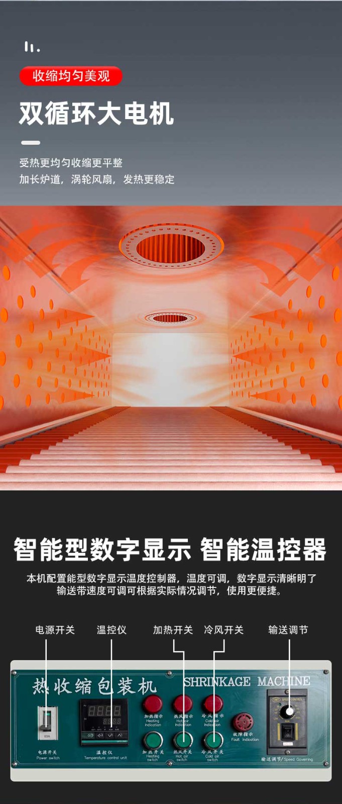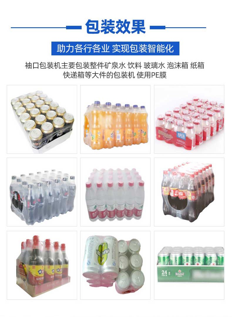 袖口式封切熱收縮包裝機(jī)憑借 高效密封、防塵防潮、貼合定型、便于堆疊運(yùn)輸 的核心優(yōu)勢(shì),廣泛應(yīng)用于多行業(yè)的標(biāo)準(zhǔn)化包裝需求,尤其適配批量生產(chǎn)的規(guī)則 / 異形產(chǎn)品組合包裝。 一、食品飲料行業(yè)(最核心應(yīng)用領(lǐng)域) 瓶裝 / 罐裝產(chǎn)品組合包裝 礦泉水、啤酒、飲料、涼茶等 多瓶捆綁包裝(如 6 瓶 / 12 瓶 / 24 瓶組),無(wú)底托收縮膜直接包裹,替代傳統(tǒng)紙箱 / 膠帶,降低包裝成本 30%+,且透明膜可展示產(chǎn)品品牌; 罐頭、醬料瓶、食用油桶等 單瓶 / 多瓶密封包裝,防止運(yùn)輸過(guò)程中泄漏、氧化,延長(zhǎng)保質(zhì)期(尤其適用于含油脂、易受潮食品)。 零食與烘焙產(chǎn)品包裝 餅干盒、薯片罐、面包禮盒等 多盒組合包裝(如 3 盒 / 6 盒套裝),收縮膜緊密貼合,避免禮盒散開(kāi),同時(shí)防塵防潮,提升禮盒檔次; 冷凍食品(如速凍水餃、湯圓)的 外箱收縮包裝,強(qiáng)化箱體密封性,防止冷鏈運(yùn)輸中受潮解凍。 符合食品級(jí)包裝標(biāo)準(zhǔn)(適配 PE/POF 無(wú)毒膜),包裝速度快(8-15 包 / 分),適配生產(chǎn)線連續(xù)作業(yè),同時(shí)透明包裝便于終端貨架展示。 高效量產(chǎn),適配規(guī)模化生產(chǎn) 全自動(dòng)機(jī)型包裝速度達(dá) 8-25 包 / 分鐘(單排)、15-40 包 / 分鐘(多排),支持 24 小時(shí)連續(xù)作業(yè),匹配食品飲料、日化等行業(yè)生產(chǎn)線節(jié)拍; 換產(chǎn)靈活,參數(shù)化存儲(chǔ) 100 + 組產(chǎn)品規(guī)格,切換僅需 2-5 分鐘,無(wú)需拆卸機(jī)械部件。 包裝效果優(yōu)質(zhì),防護(hù)與展示兼具 熱收縮膜緊密貼合產(chǎn)品輪廓,形成密封、防潮、防塵、防刮的立體包裝,降低運(yùn)輸損耗率至 0.5% 以下; 支持透明膜 / 彩印膜包裝,透明膜可展示產(chǎn)品細(xì)節(jié),彩印膜可印刷品牌 LOGO 與促銷(xiāo)信息,兼顧防護(hù)與品牌營(yíng)銷(xiāo)。 成本可控,降本增效顯著 無(wú)底托包裝設(shè)計(jì)替代傳統(tǒng)紙箱、膠帶,包裝材料成本降低 30%-50%,同時(shí)節(jié)省倉(cāng)儲(chǔ)與運(yùn)輸空間 40%; 采用紅外加熱或石英管加熱技術(shù),比傳統(tǒng)電熱絲節(jié)能 30%-50%,待機(jī)自動(dòng)降功率,長(zhǎng)期運(yùn)行成本更低; 全自動(dòng)機(jī)型僅需 1 人巡檢,降低人工成本 80%,避免人工操作誤差。 兼容性強(qiáng),適配多場(chǎng)景需求 可包裝方形、圓形、異形等多種形態(tài)產(chǎn)品,支持單件 / 多件組合包裝,產(chǎn)品尺寸覆蓋 50mm×30mm×20mm 至 800mm×600mm×500mm(可定制更大規(guī)格); 適配 PE、POF、PVC 等多種熱收縮膜,滿足食品級(jí)(FDA/ROHS)、醫(yī)藥級(jí)(GMP)、工業(yè)防靜電等不同行業(yè)標(biāo)準(zhǔn)。 智能化操作,易上手易維護(hù) PLC 觸控屏可視化操作,參數(shù)設(shè)置直觀,普通工人 1-2 小時(shí)即可獨(dú)立操作,支持故障自動(dòng)報(bào)警與修復(fù)提示; 模塊化結(jié)構(gòu)設(shè)計(jì),封刀、加熱管等易損件更換便捷,日常維護(hù)僅需清潔、緊固,維護(hù)成本降低 40%。 環(huán)保合規(guī),符合綠色生產(chǎn)趨勢(shì) 采用可回收、無(wú)毒環(huán)保膜材,無(wú)粉塵、無(wú)異味排放,符合全球綠色包裝政策; 減少紙箱、膠帶等不可降解材料使用,降低快遞垃圾與資源浪費(fèi),適配電商、物流行業(yè)環(huán)保要求。