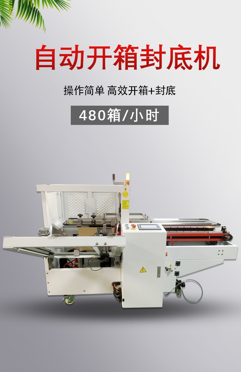 1. 降低人工成本,減少勞動強度人工開箱封底不僅效率低,還需要重復彎腰、折蓋、封箱等動作,勞動強度大且易引發疲勞損傷。一臺自動開箱封底機可替代 3-5 名人工,長期使用能顯著降低企業的人力成本;同時徹底解放人工雙手,將工人從重復性體力勞動中釋放,轉向更具價值的崗位。