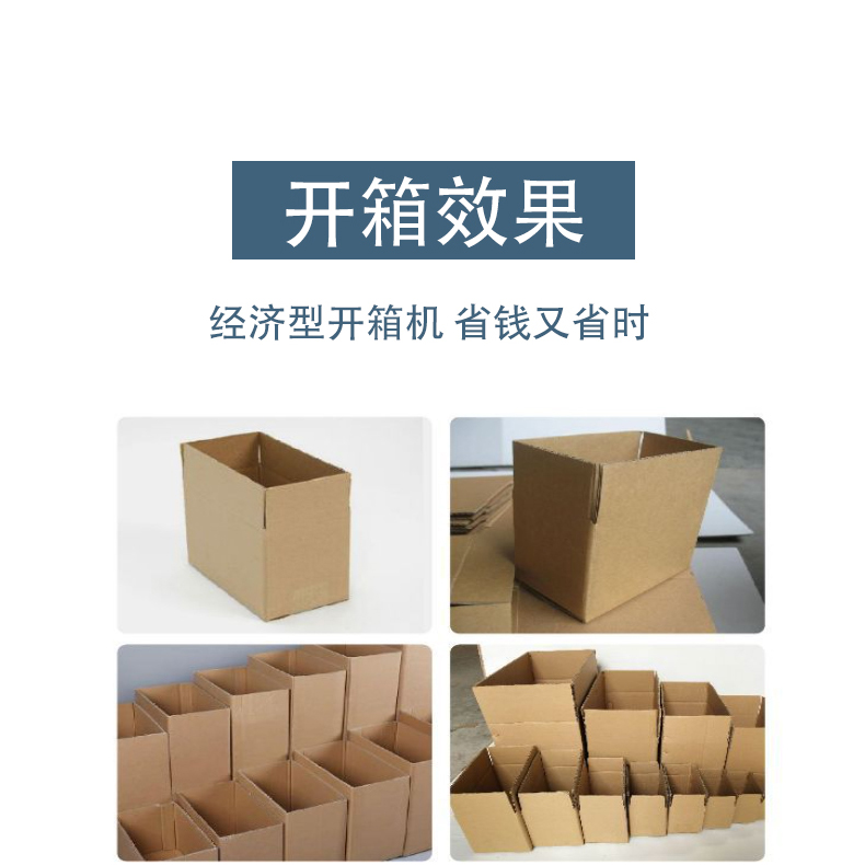 1. 開箱速度快,產能提升顯著設備按照自動化程度可分為低速、中速、高速機型,低速機型每分鐘可開箱 8-12 箱,中速機型可達 12-25 箱 / 分鐘,高速機型更是能實現 30-60 箱 / 分鐘的開箱封底效率。相比人工開箱(每分鐘僅能完成 1-3 箱),效率提升 5-20 倍,能快速匹配自動化生產線的高速運轉需求,避免因開箱環節拖慢整體生產節拍。